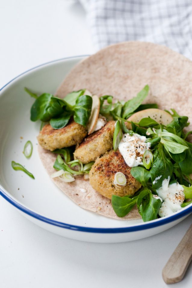 Vouw de falafels in een wrap, homemade pitabroodje of maak er een salade bij.