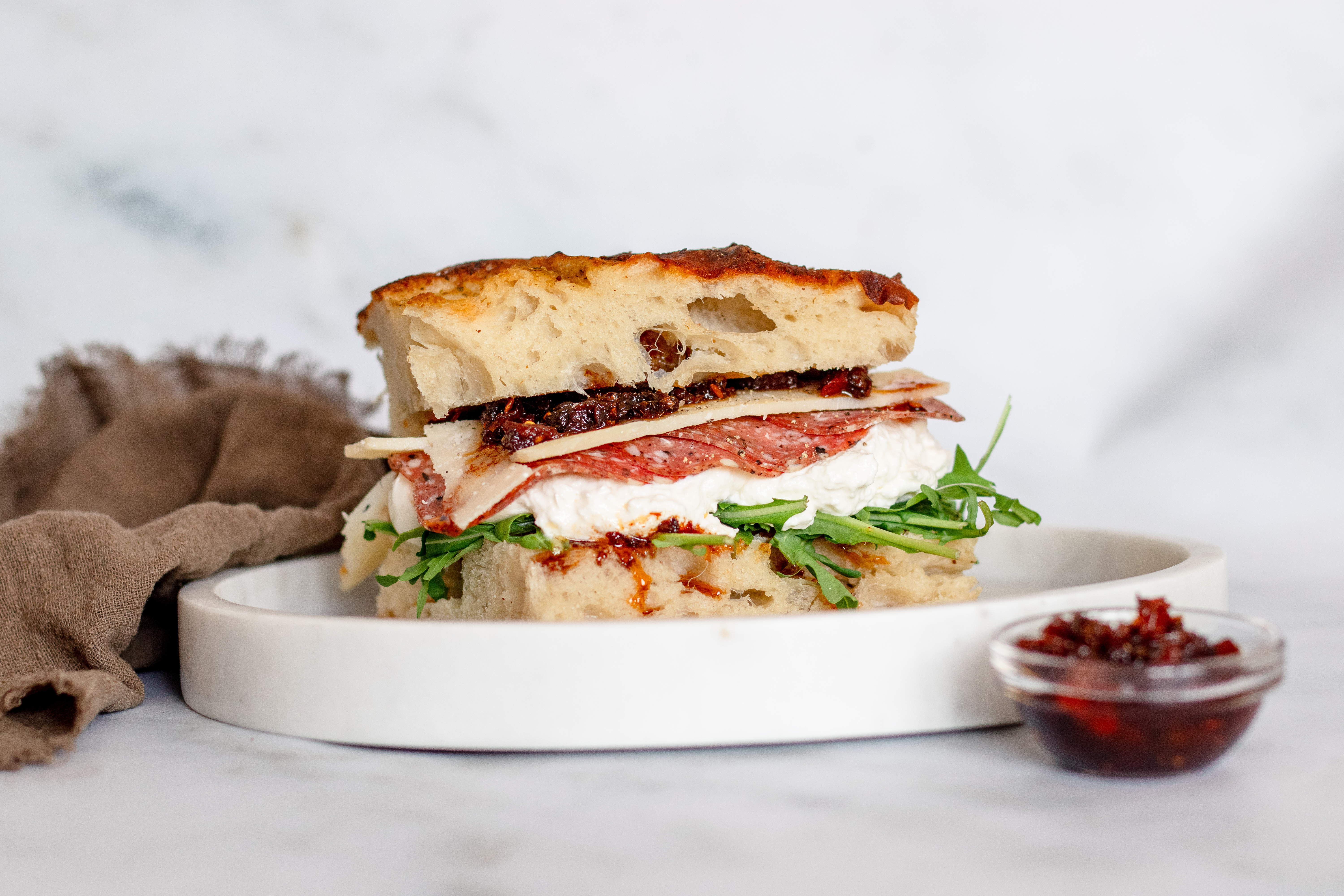 Een goed Italiaans broodje maakt iedereen blij, en dit is het ultieme recept. Want deze rijkelijk gevulde focaccia met burrata, pikante salami en zelfgemaakte tomatenchili-olie is zo lekker dat ‘ie je direct transporteert naar de levendige straten van Italië. Dit Italiaanse broodje is extra lekker met een koud glas witte wijn. Bellissimo!