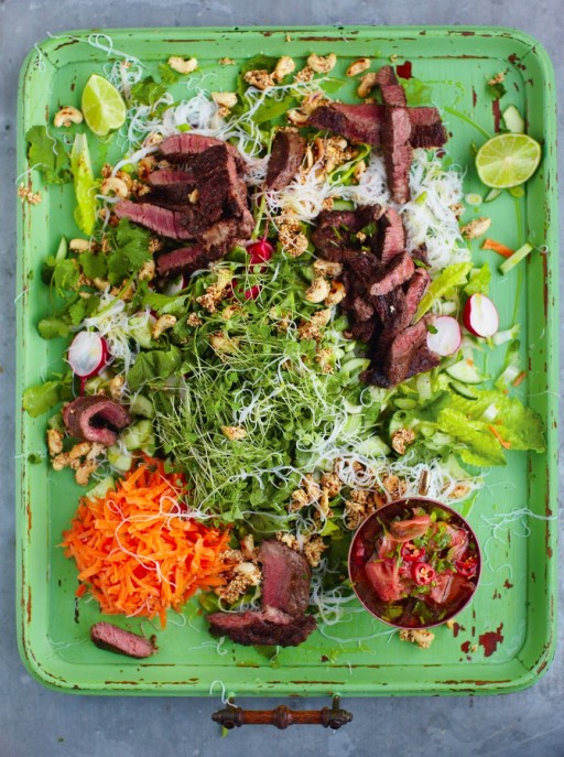 Jamie Oliver’s Aziatisch rundvlees met noodlesalade & gemberdressing