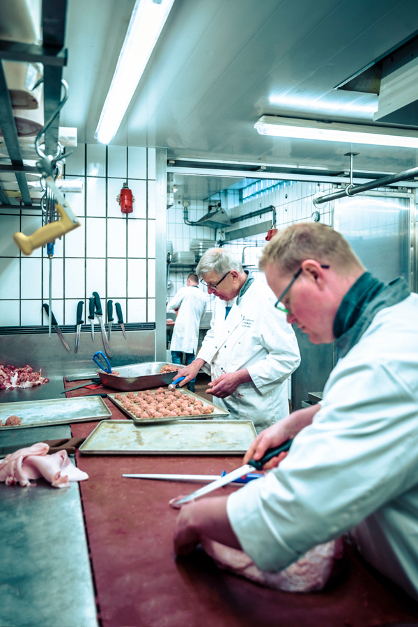 In de eigen slagerij maken ze de beroemde gehaktballen, waar zowel Hollandse garnalen uit de Noordzee als gekruid gehakt in gaat.