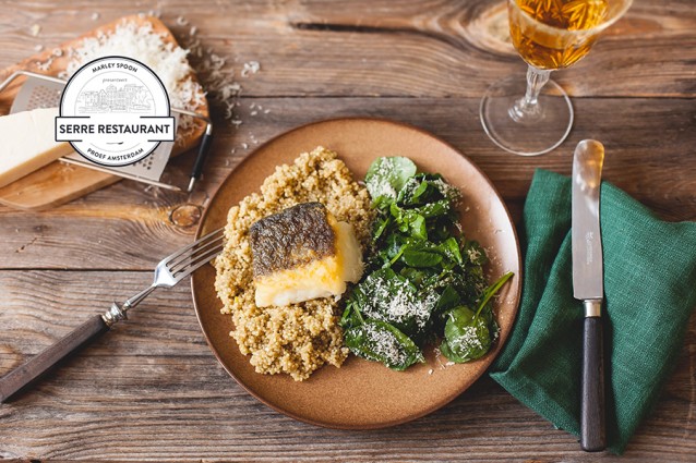 Chef Mark van der Tang van Serre Restaurant in het Okura heeft een prachtig lentegerecht met Marley Spoon gedeeld. Een prachtig stukje kabeljauwfilet, geserveerd met quinoa en een heerlijk frisse Parmezaan-waterkerssalade.