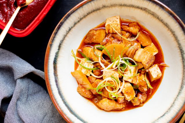 Hou je van buikspek, hou je van kimchi en hou je van makkelijke recepten? Dan is deze kimchi jjigae (Koreaanse stoofpot) er een voor jou.