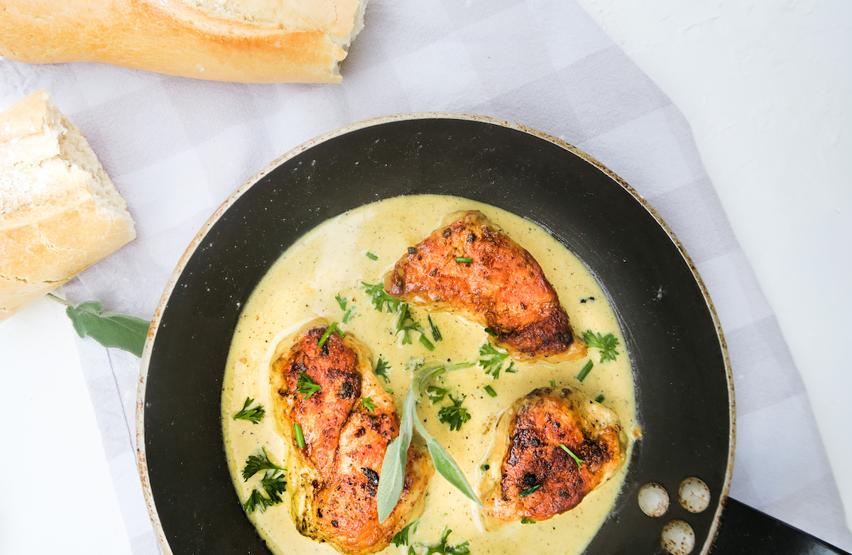 Eenvoudig, smaakvol en lekker: beter kunnen we deze kippendijen niet omschrijven. Wij serveerden ‘m met een stukje brood, maar ook bij aardappelpuree of krieltjes uit de oven is dit een keigoede maaltijd.
