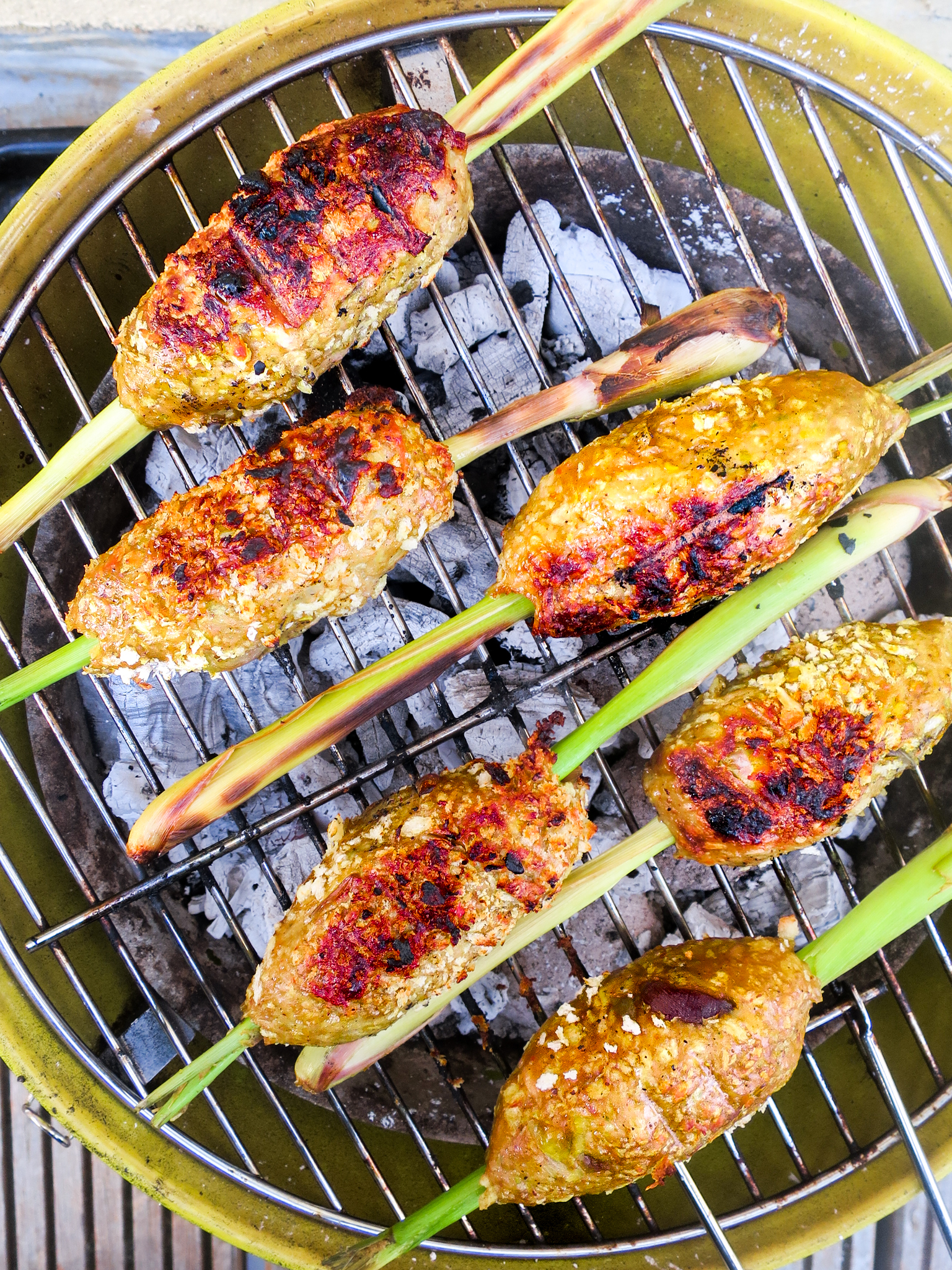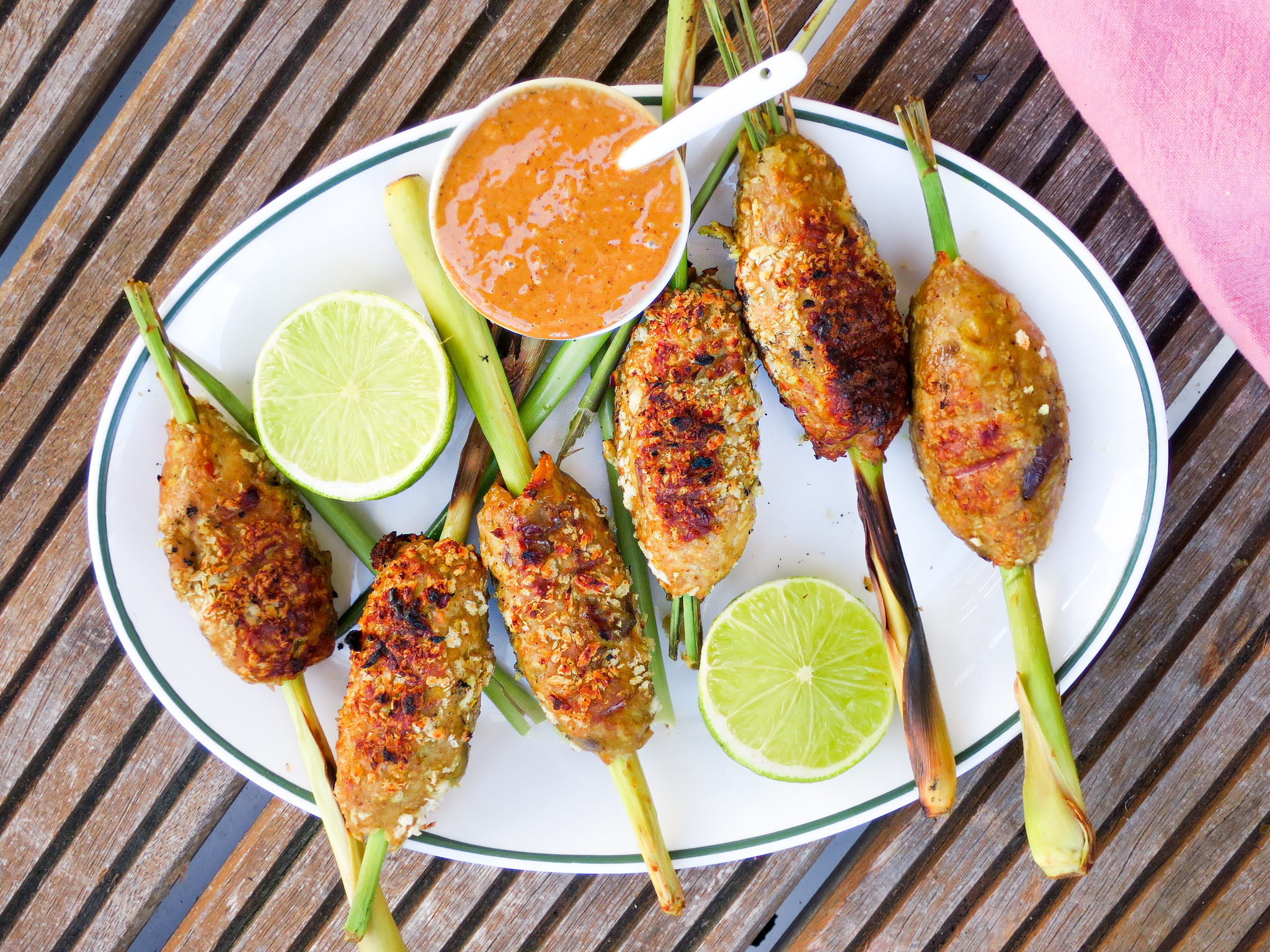 Door kipspiesjes te maken met citroengras als stokje, kruipt de smaak van citroengras subtiel in het vlees. Superlekker, zeker als je het kipgehakt op voorhand kruidt met Aziatische smaakmakers als gember en kokos. En da’s exact wat we in dit recept hebben gedaan, geïnspireerd op de streetfood snack die onder meer op Bali erg populair is.