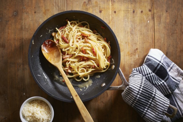 Dit recept voor carbonara is afkomstig uit de Italiaanse kookbijbel De Zilveren Lepel. Kun je geen pancetta vinden? Ga dan voor gerookte spekblokjes.