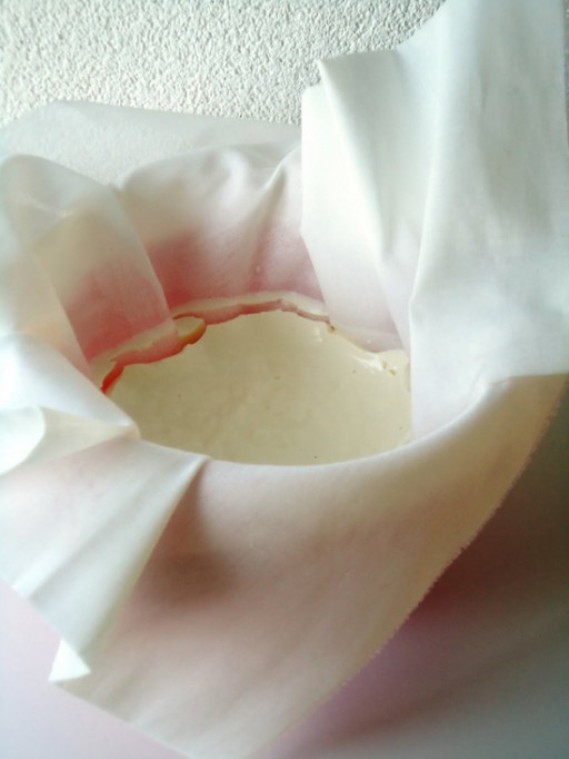 Hangop betekent uitgelekte yoghurt. Je zal zien dat het vocht zich onderin de kom verzamelt en er blijft een lobbige kwark achter in de kaasdoek. Heerlijk! Voeg hier een theelepel vanille extract aan toe en als je een zoetekauw bent, nog wat suiker. Ik heb dit zelf achterwege gelaten.