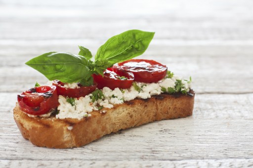 Knapperig toast tricolore: ricotta, tomaat en basilicum