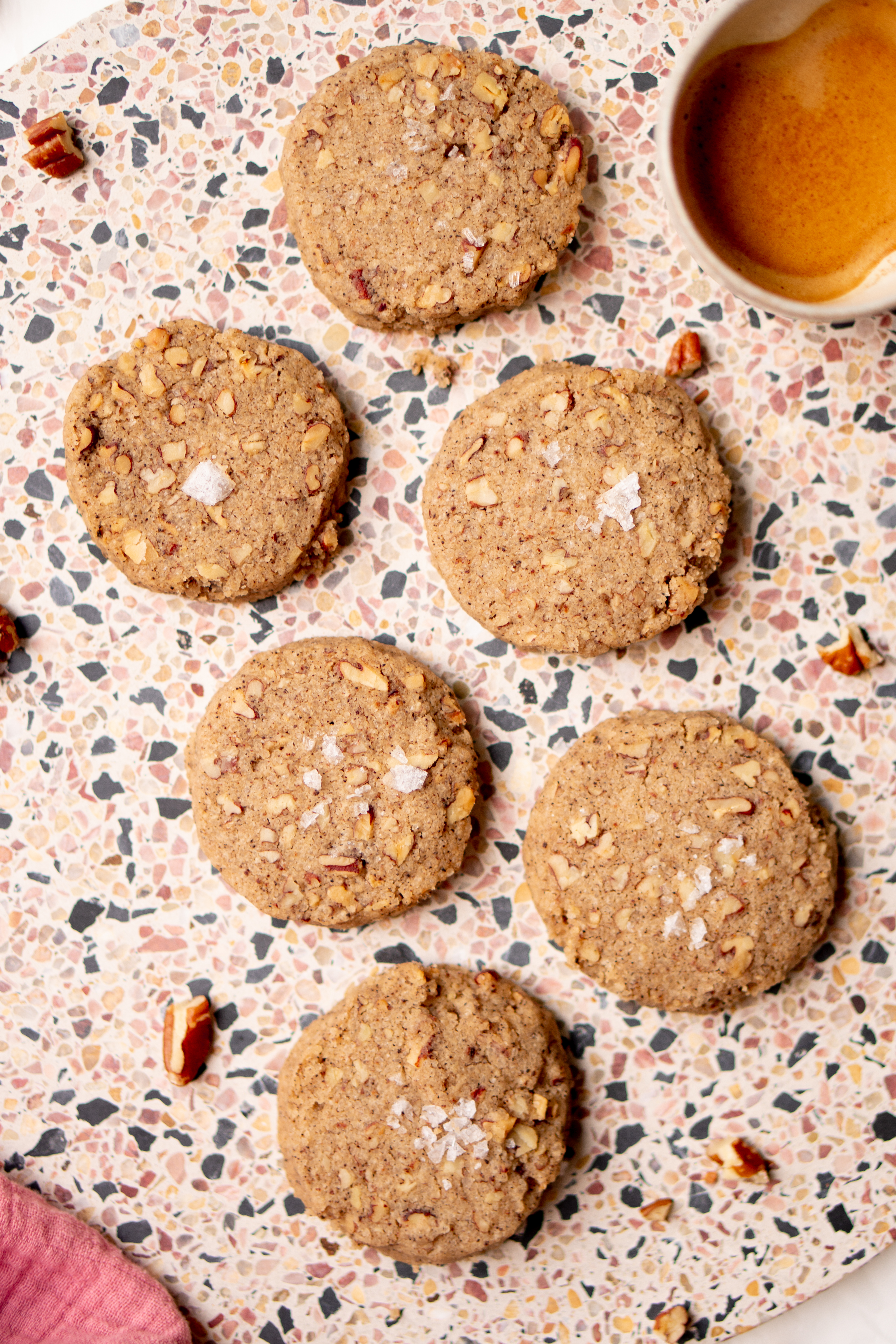 Voor deze koekjes met bruine boter, koffie en pecannoten stoppen we gewoon al onze favoriete ingrediënten in een koekje. Heel mooi zijn ze niet, maar lékker…! Deze koekjes zijn niet voor zoetekauwen, want door de koffie en bruine boter smaken ze bijna hartig.