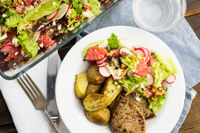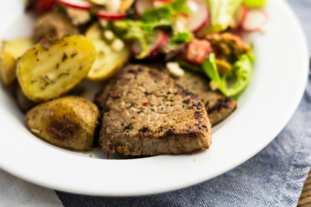 Weer een lekker recept, perfect voor de doordeweekse avond: citrussalade met rosbief à la minute en aardappeltjes.