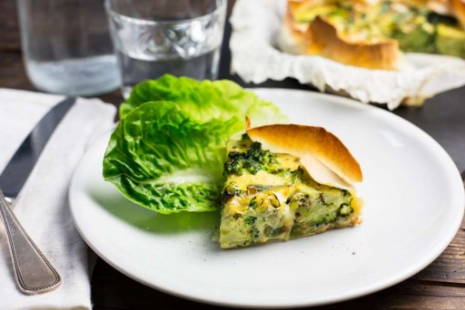 Dit recept is simpel en perfect voor een doordeweekse dag: groene-groentequiche met tuinerwten, prei en broccoli.
