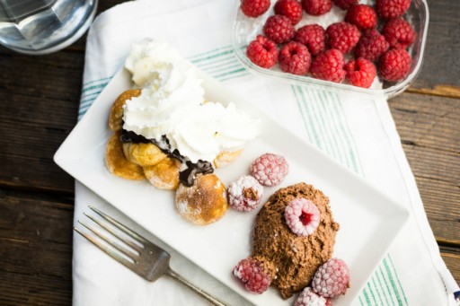 Een klassiek toetje met een moderne twist: poffertjes dame blanche met frambozen.
