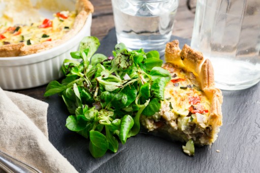 Dit recept is simpel en perfect voor een doordeweekse dag: tonijnquiche met groene salade.