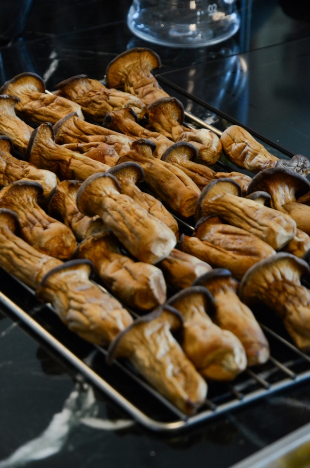 Haal de koningsboleten uit de oven en snijd in plakjes van ongeveer 1 cm dik. Bewaar de lichtbruine plakjes van de steel.