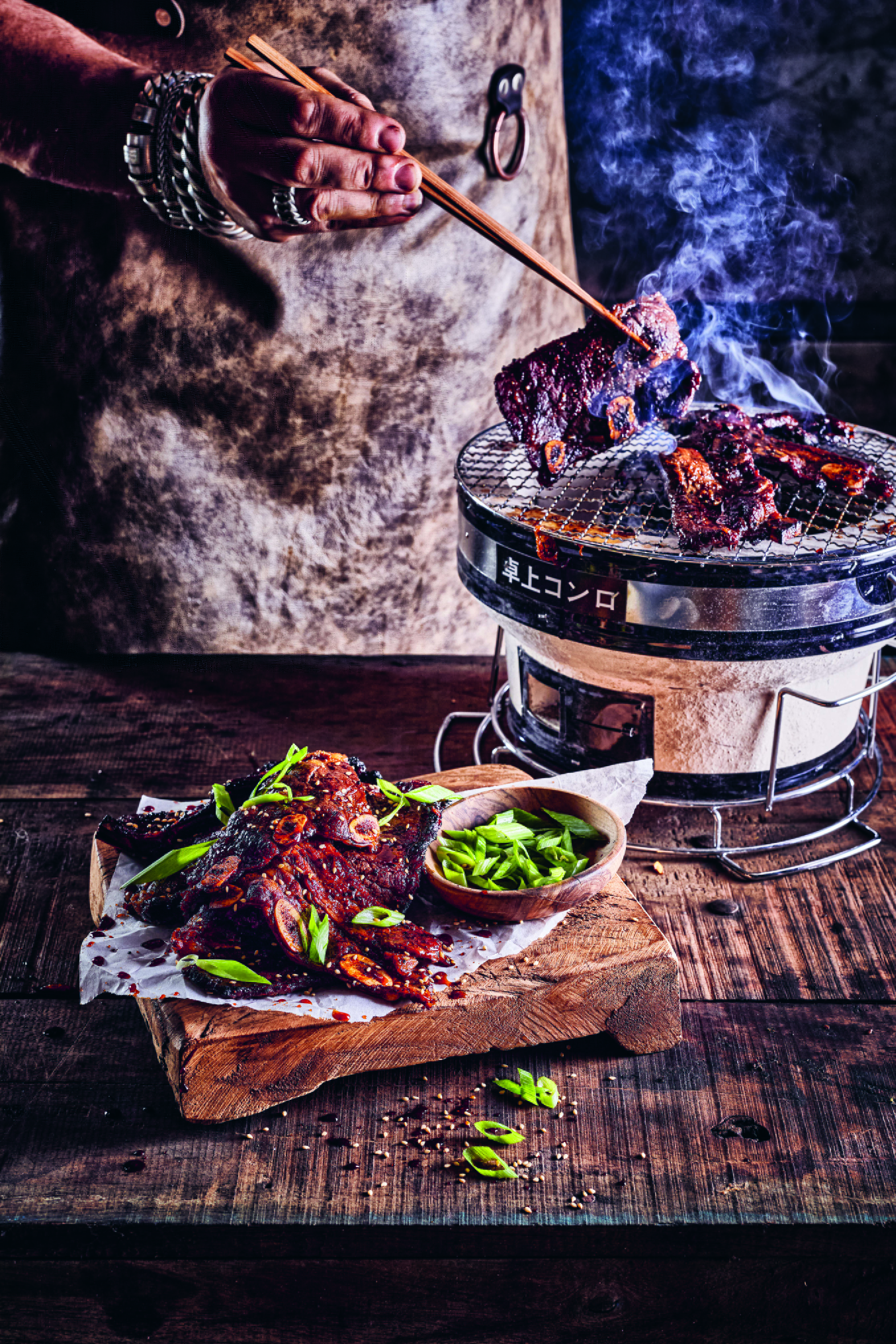 Dat snelle grillen zorgt ervoor dat het vlees sappig blijft, met die onweerstaanbare gekaramelliseerde randjes. Het resultaat: short ribs met een flinke bite, een plakkerige glaze en die rokerige smaak waar je écht geen genoeg van krijgt.