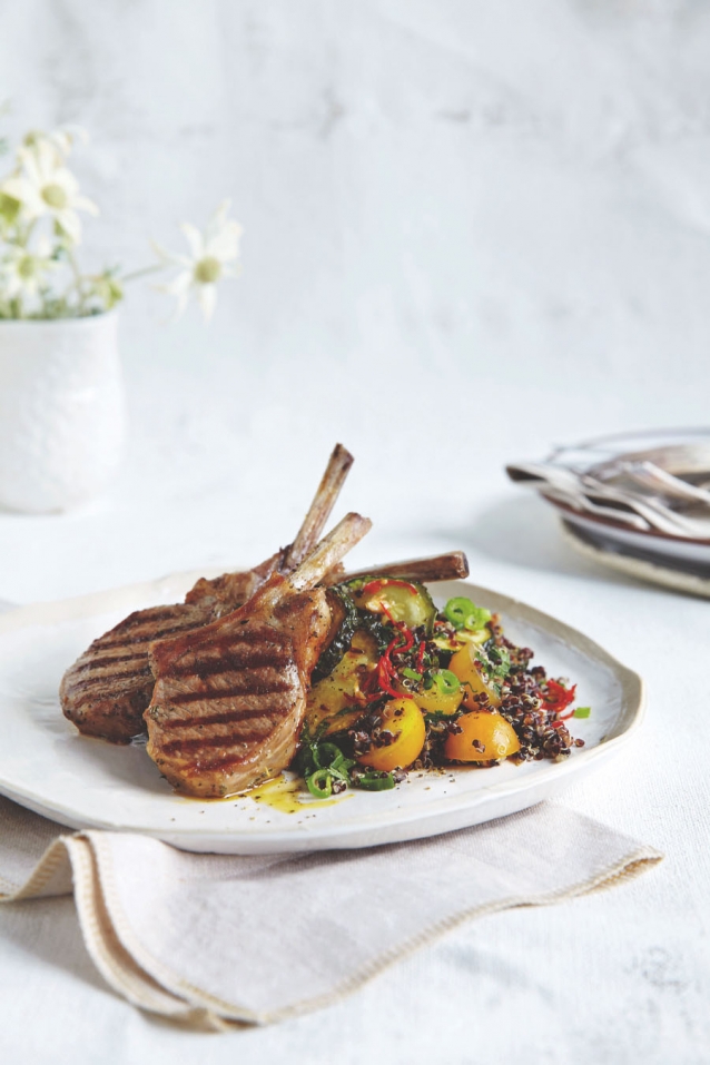 A simple table is het heerlijke kookboek van kok en foodstylist Michele Cranston. Je vindt hierin ruim 100 recepten; van een snelle kom pasta tot een feestmaaltijd. Wij mogen alvast een recept delen: lamskoteletten met courgette-quinoasalade.