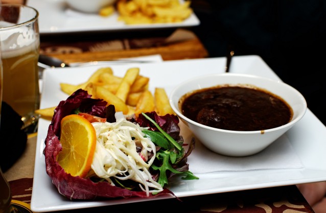 Naast friet zijn aardappelpuree of aardappelkroketten ook lekker op je bordje zuurvlees. Doe daar dan spruitjes met spekjes of rodekool bij. En natuurlijk wat lekkers te drinken: een glas stevige rode wijn, een goed abdijbier of een glas port.