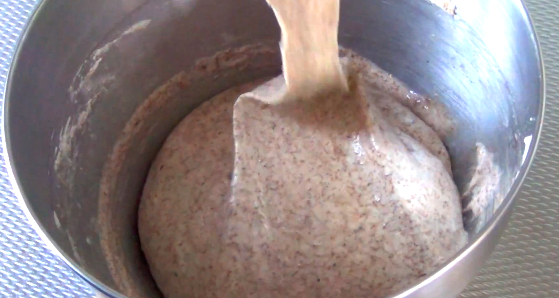 Meng voorzichtig het eiwit met de droge stof (het gezeefde amandelmengsel).