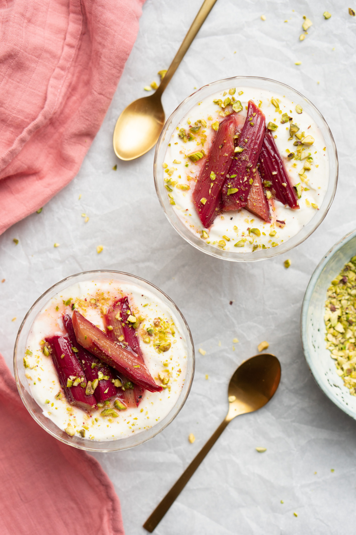 Makkelijk toetje met rabarber en frisse yoghurtmousse