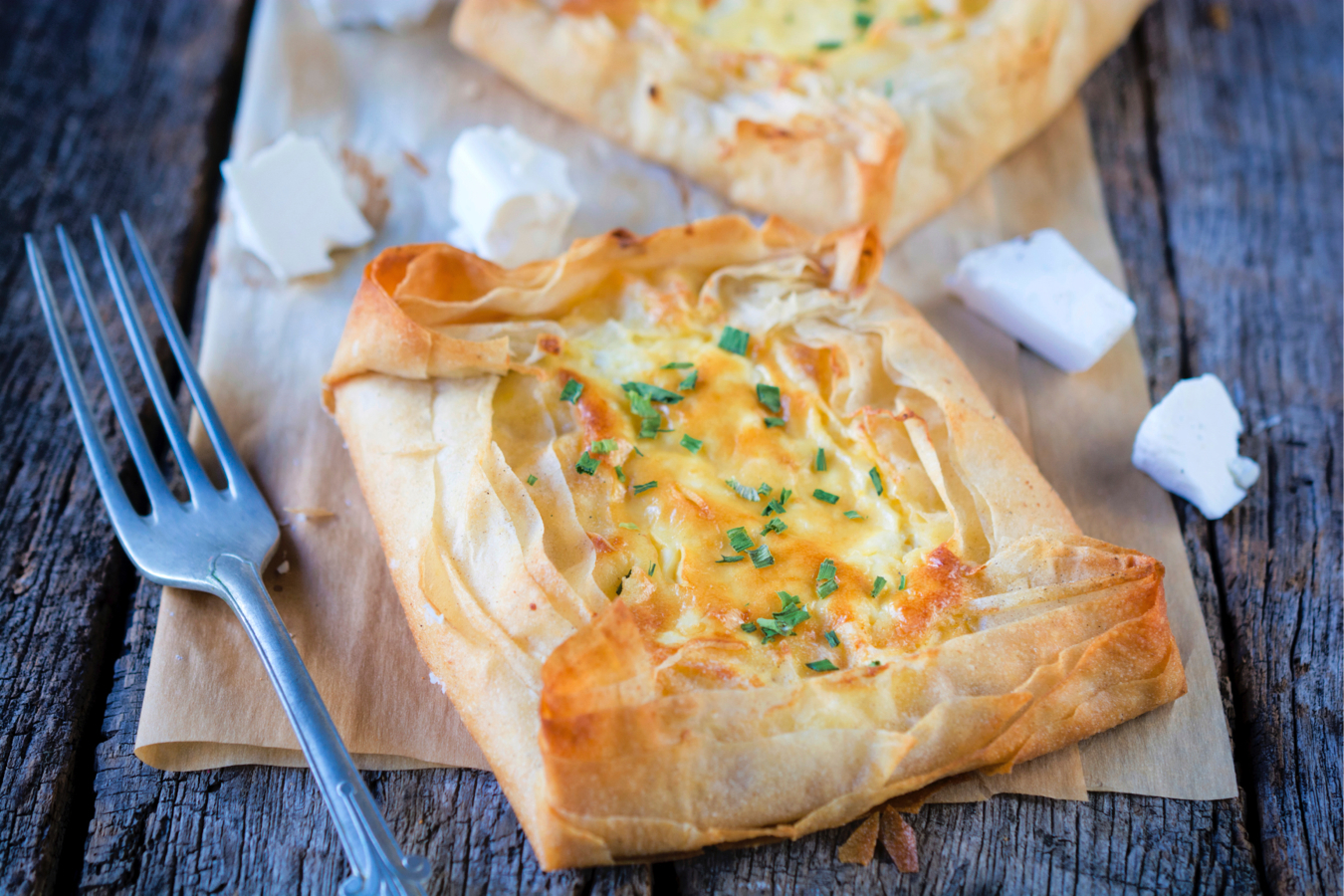 Makkelijke eenpersoons quiche met filodeeg, geitenkaas en spinazie