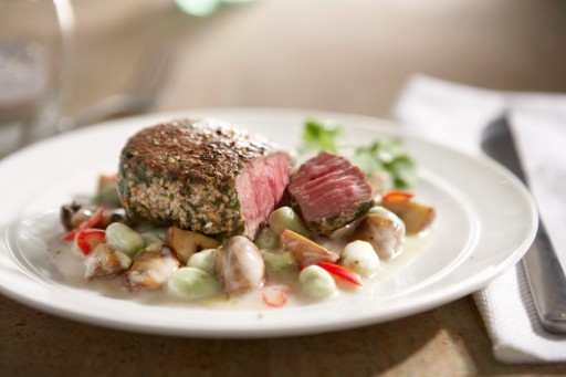 Mmm, malse runderbiefstuk met gesmoorde tuinbonen. Dit recept is afkomstig van chefkok Mathijs Vrieze.