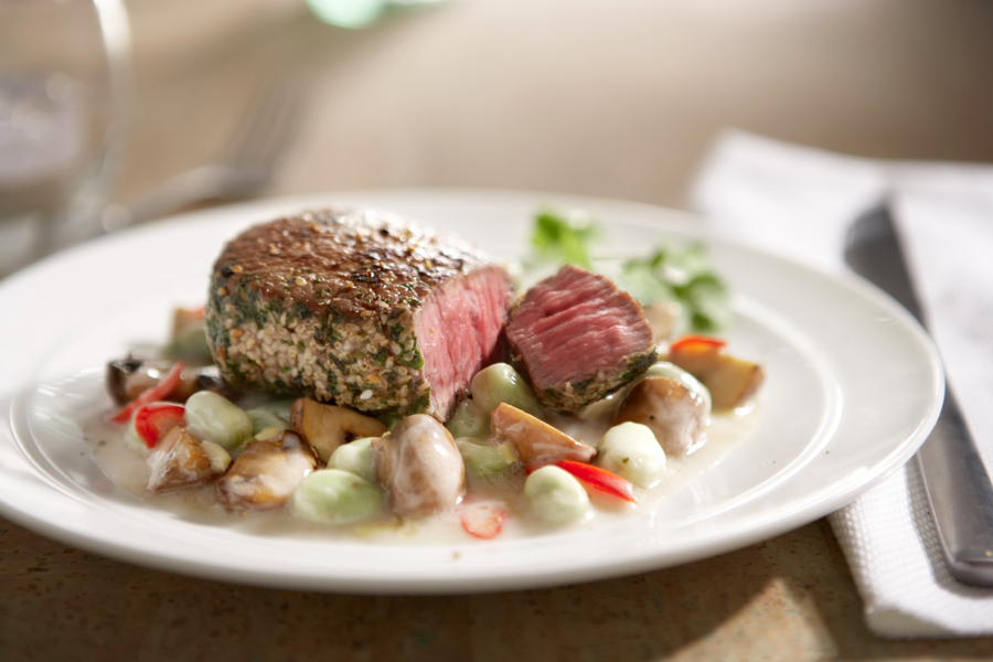 Malse runderbiefstuk met gesmoorde tuinbonen