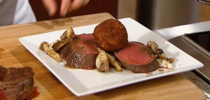 Mijn gerecht bij Masterchef: hertenrug met parelgort en een bloedworst bitterbal.