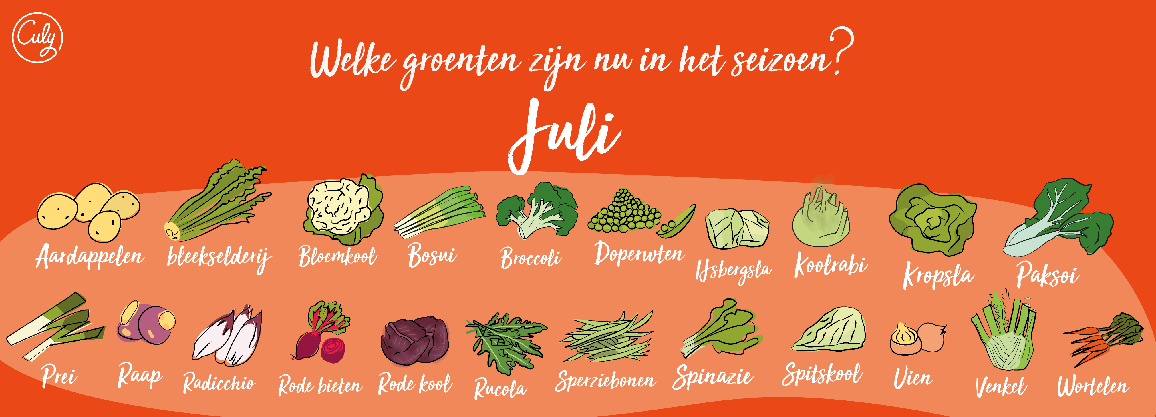 Reden genoeg dus, lijkt ons! Voor wie helemaal overtuigd is, hebben we de seizoensgroenten van juli op een rijtje gezet.
