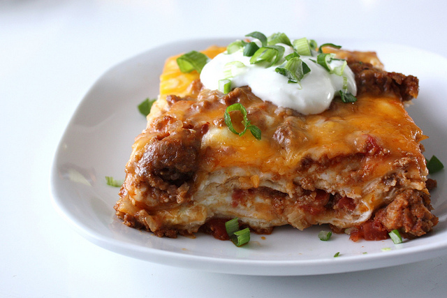 Op Buzzfeed zagen we dit leuke recept voor Mexicaanse lasagne. In plaats van de standaard (maar ó zo lekkere) bolognesesaus en lasagnevellen te gebruiken, gaan we aan de slag met maïstortillas, tomatensalsa en Cheddar.