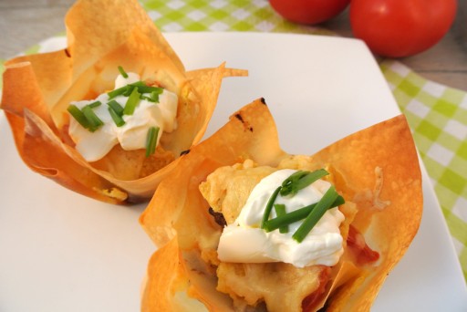 De mini tacootjes moeten nu voor ongeveer 16-20 minuten de oven totdat ze goudbruin zijn. Serveer de taco’s lekker met wat creme fraiche, verse tomaat of koriander. En smullen maar! Ook heerlijk met een lekkere frisse Mexicaanse salade.