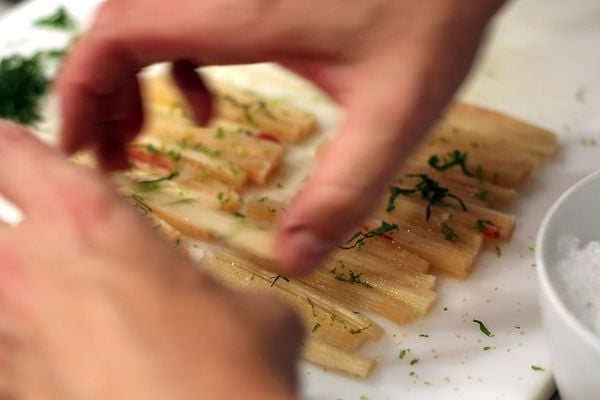 Als dat is gelukt, doe je de staafjes in een plastic zakje met witte rum en wat limoenrasp. Laat dit een nachtje weken en bestrooi de volgende dag met fijgehakte muntblaadjes. Serveer in een glaasje met gecrushed ijs en eventueel nog wat kristalsuiker.