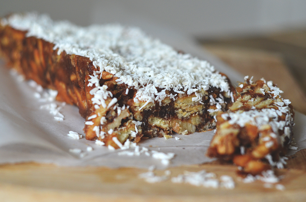 No-bake dadeltaart met kokos en koekjes