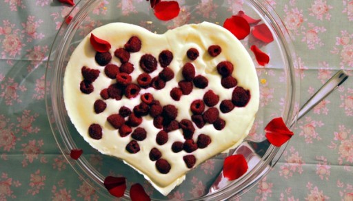 No-bake Valentijnstaart met witte chocolade & frambozen