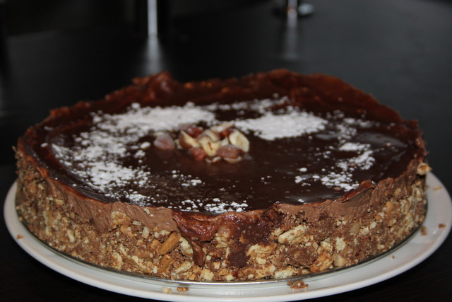 Zo! Haal je taart uit de koelkast en strooi er een beetje poedersuiker overheen en leg wat hazelnootjes in het midden. Dit is dan je jummy jummy Nutella Cheesecake. Een ontzettend goed vullende taart waar je maar een klein stukje van hoeft af te snijden om volop te genieten. De taart is niet moeilijk om te maken en hij is ontzettend lekker! Deze taart ga ik zeker nog een keer maken!