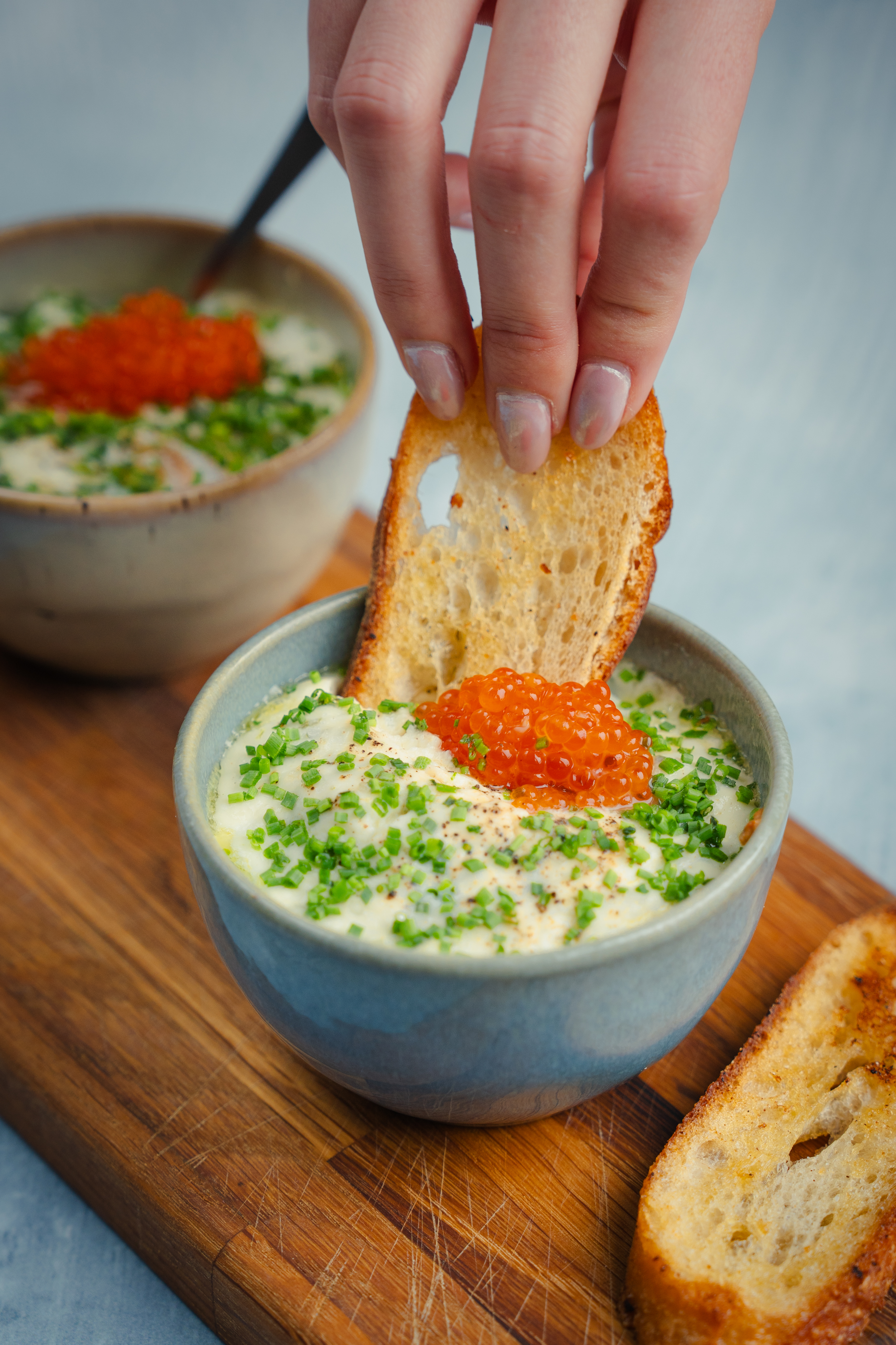 Op zoek naar iets makkelijks maar toch indrukwekkends voor je volgende brunch? Oeuf en cocotte – een romig eitje uit de oven – is precies wat je nodig hebt. Een chique naam voor iets verrassend simpels, dat we natuurlijk wel voorzien van een Culy-twist met gerookte zalm, kruidenkaas en als finishing touch een lepeltje zalmforeleitjes.