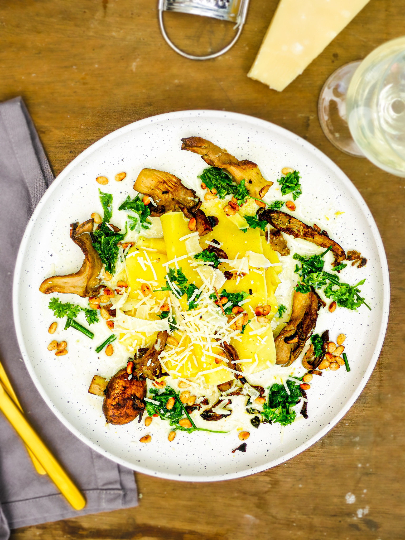 “Wat is dat precies, een open lasagne?”: een vraag die je onvermijdelijk krijgt als je aankondigt dat je dit gerecht gaat maken. Maar laat het je vooral niet tegenhouden en laat ook vooral de smaak spreken. We kunnen je immers garanderen: open lasagne met paddenstoelen, groene kruiden, pijnboompitjes en een romige wijnsaus is – naast ’s keer wat anders – bovenal ook fenomenaal lekker.