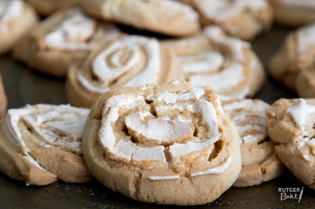 Rutger: “Onlangs at ik ergens jitterbugs; Zweedse koekjes die bestaan uit koekdeeg met eiwitschuim erin gerold. Het was voor het eerst dat ik deze combinatie tegenkwam. Gek eigenlijk, want het is super lekker!