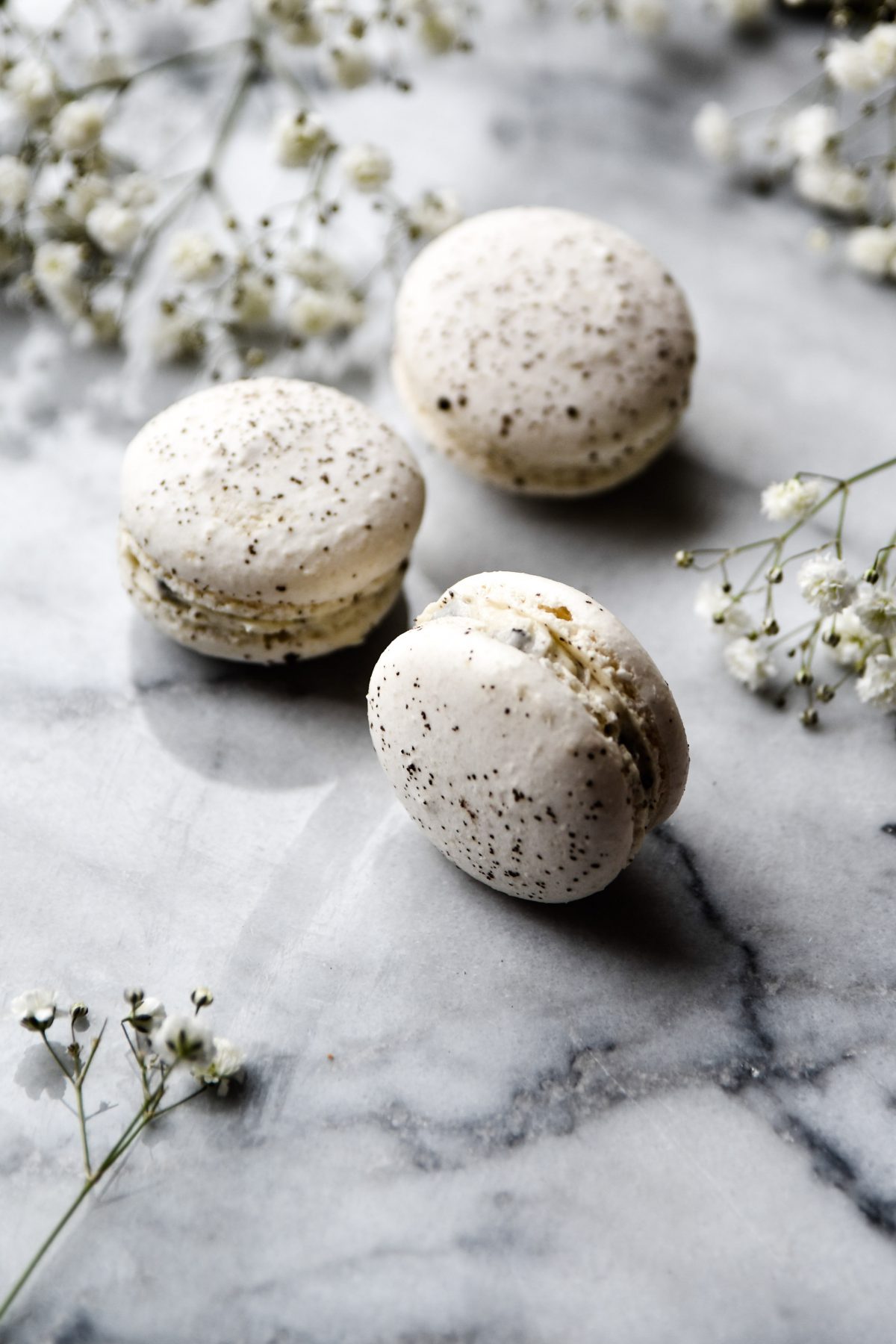 Hagelwitte macarons met Oreo en creamcheese vulling