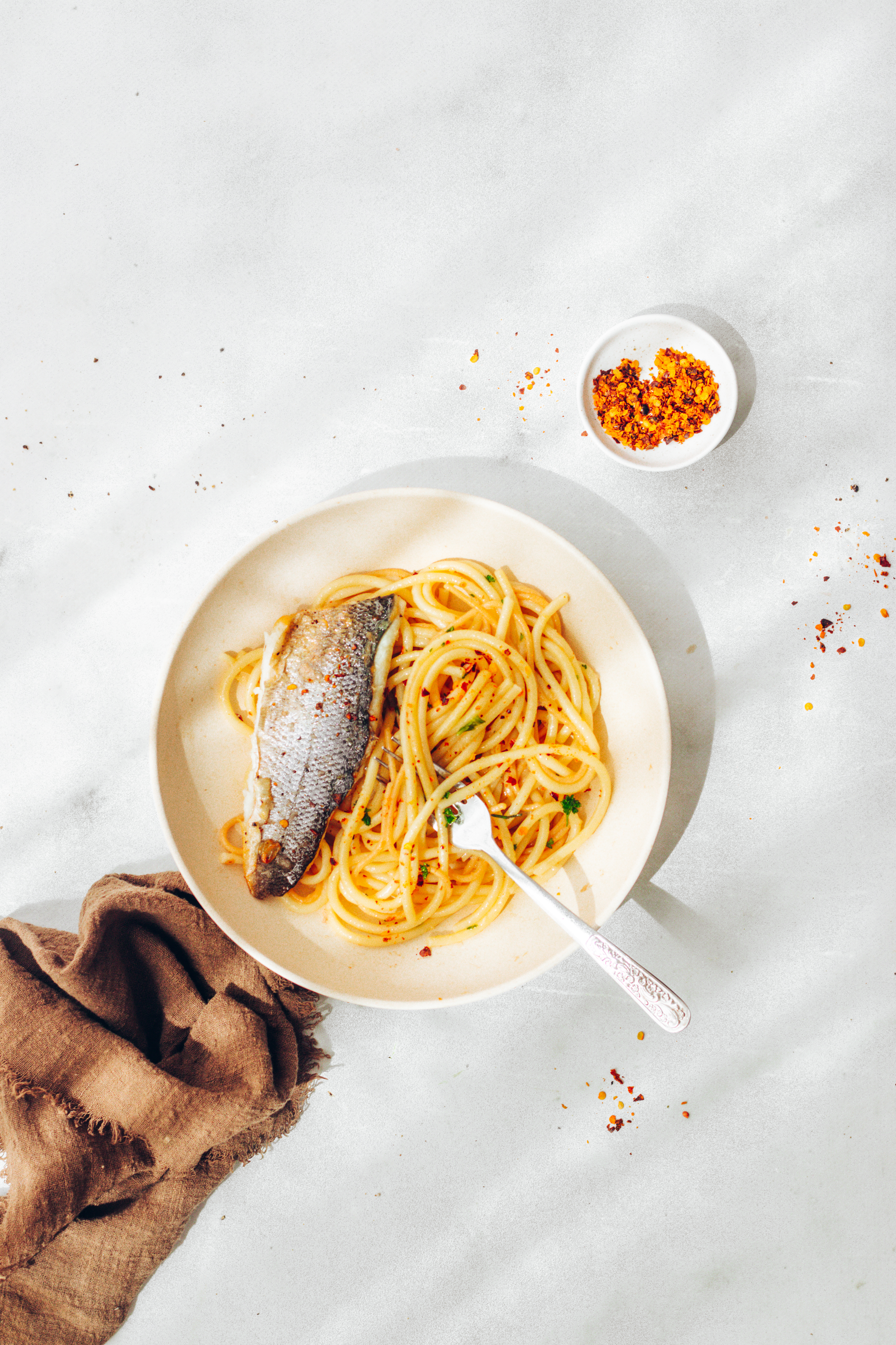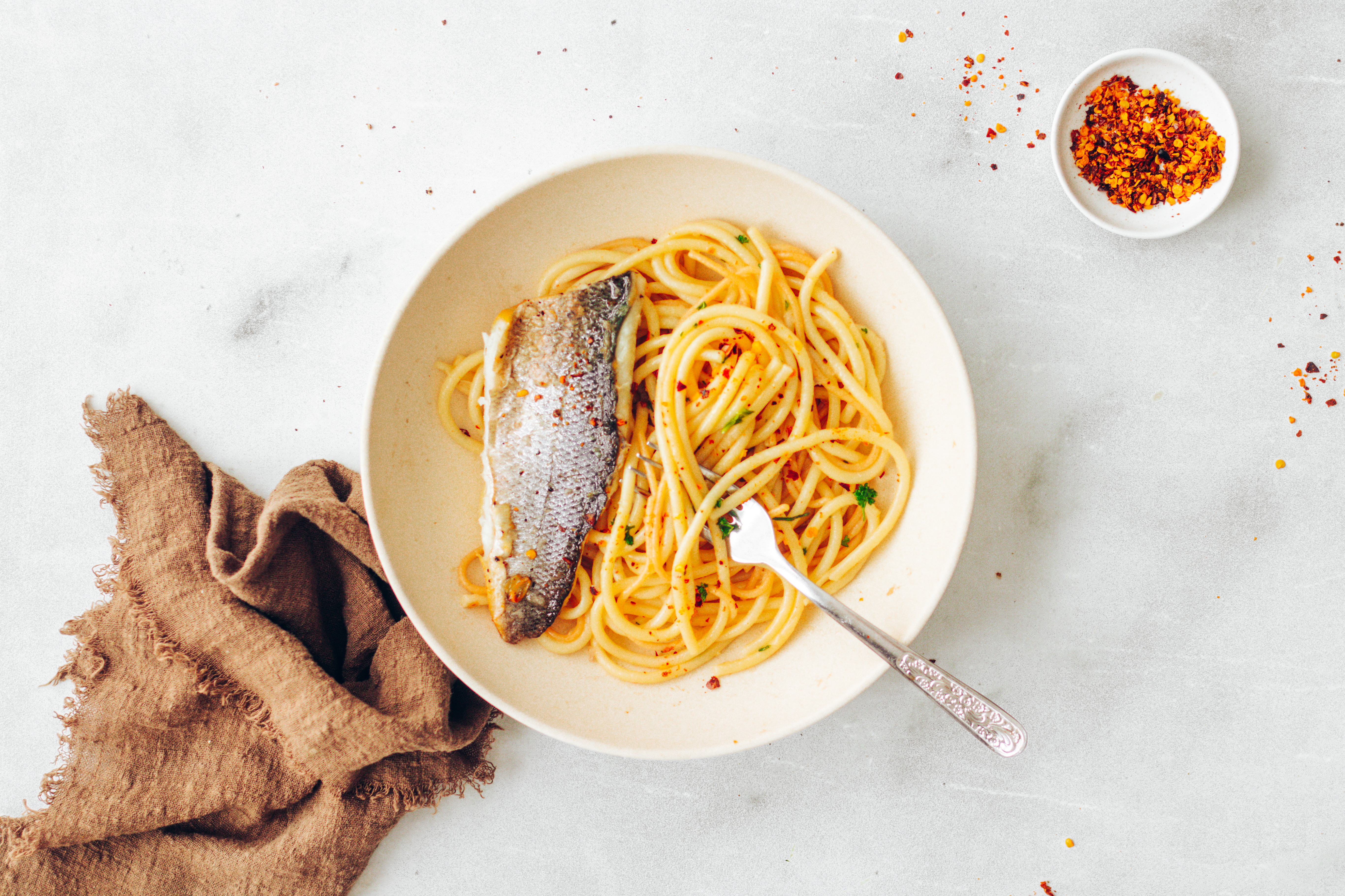Snelle vis in aglio en olio met pasta (net zo lekker als in een Italiaans restaurant)