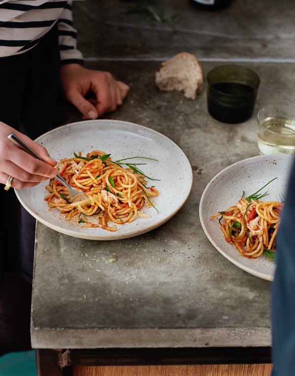 Samuel Levie is één van de oprichters van worstenmerk Brandt & Levie, maar hij doet nog zoveel meer dan dat. Schrijven en koken, bijvoorbeeld. Zijn eigen boek, We eten thuis, is een heerlijke verzameling van familiegerechten. Wij mogen een heerlijk recept uit dit boek met jullie delen: pasta met krab en venkel.
