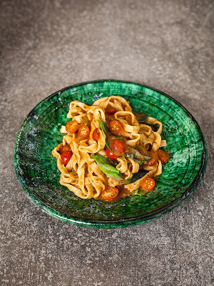 Deze pasta met miso (!) en tomaat is snel, makkelijk en toch heel spannend. Het recept komt uit het nieuwe boek ‘Boter, botten, zout’ van Nicole Pisani.