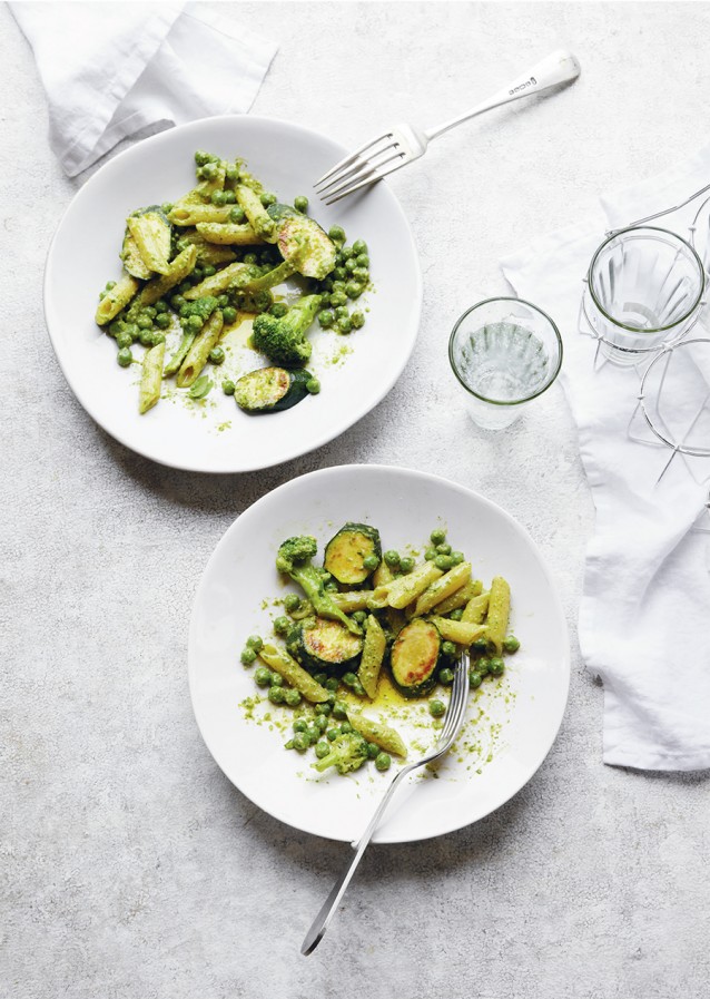 Dit heerlijke gezonde recept voor pasta met pesto van paranoten en rucola komt uit het heerlijke boek Deliciously Ella van foodblogger Ella Woodward.