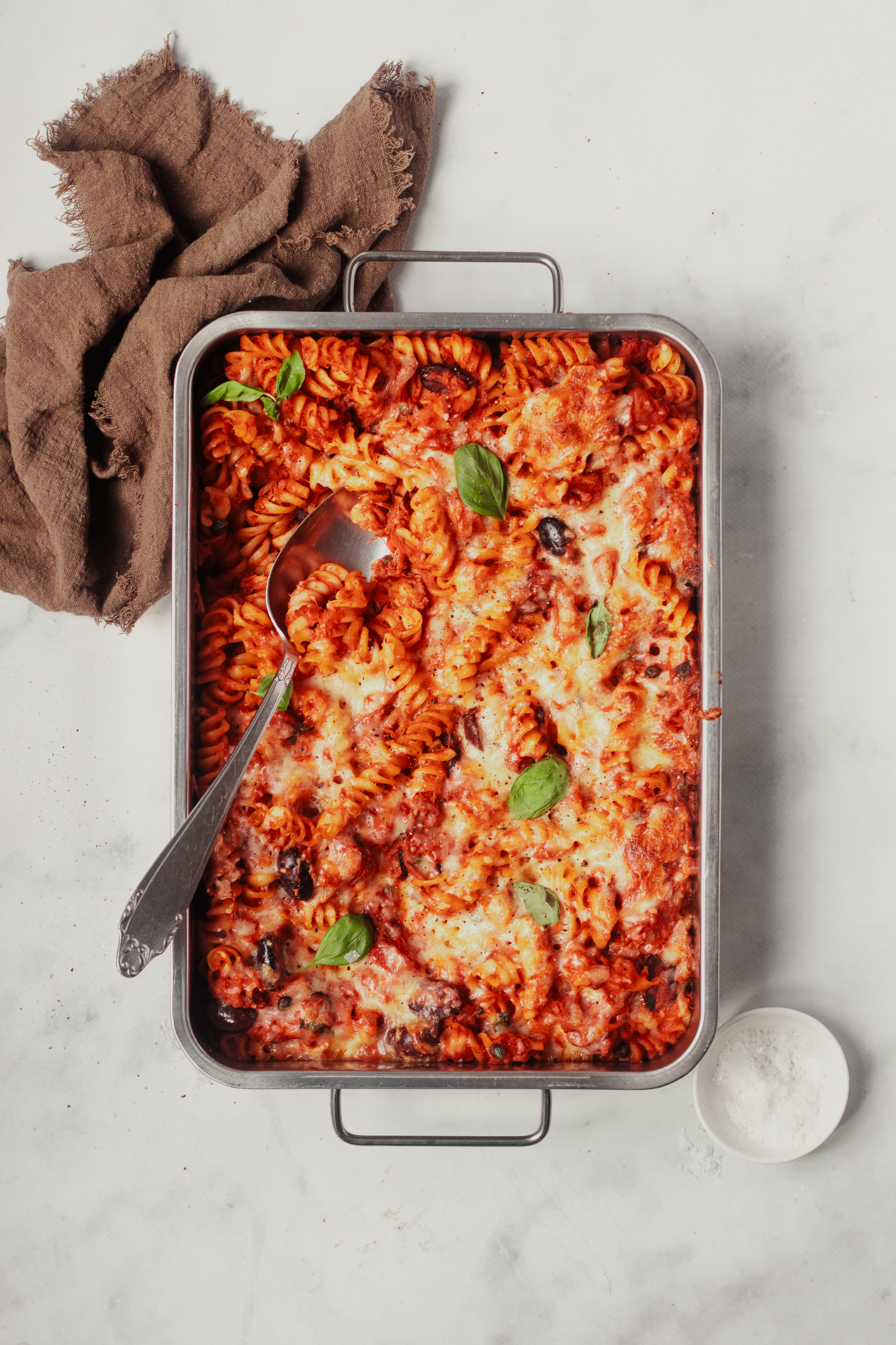 Pasta puttanesca uit de oven