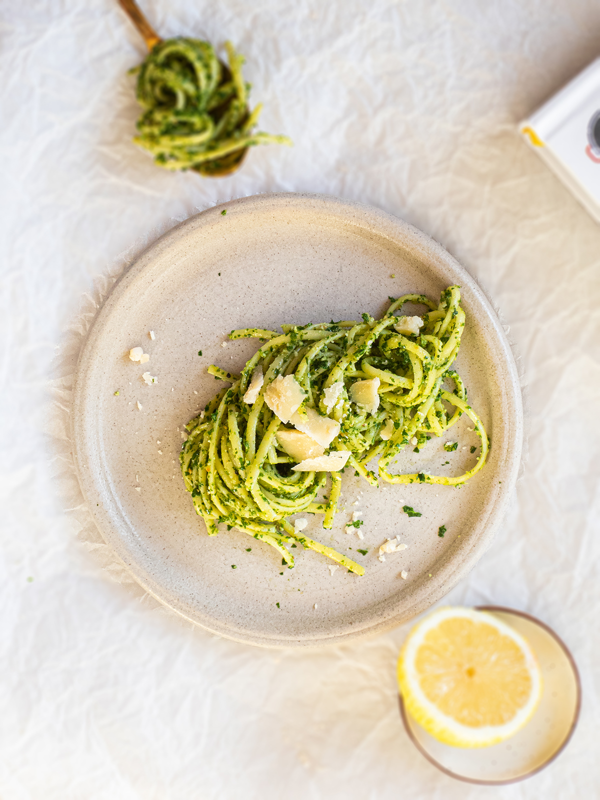 We schreven het al eerder: voor een goede pasta pesto maak je de pesto uiteraard zélf (echt jongens, pesto uit een potje is een dikke no-go). Daarvoor heb je natuurlijk wel handenvol verse basilicum nodig, en momenteel laat winters Nederland dat niet echt toe. Daarom presenteren we je een net zo lekker alternatief in een winters jasje: pasta pesto met een winterpesto van… boerenkool!