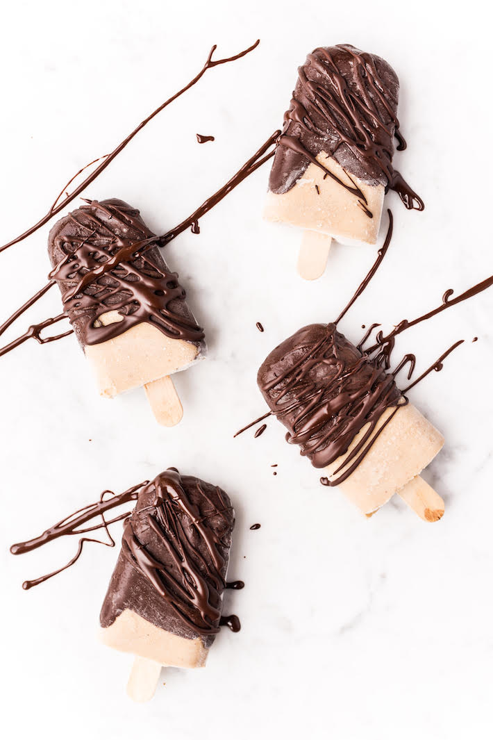 Haal het ijsje uit zijn vorm en dip hem in de gesmolten chocolade. Laat iets uitlekken.