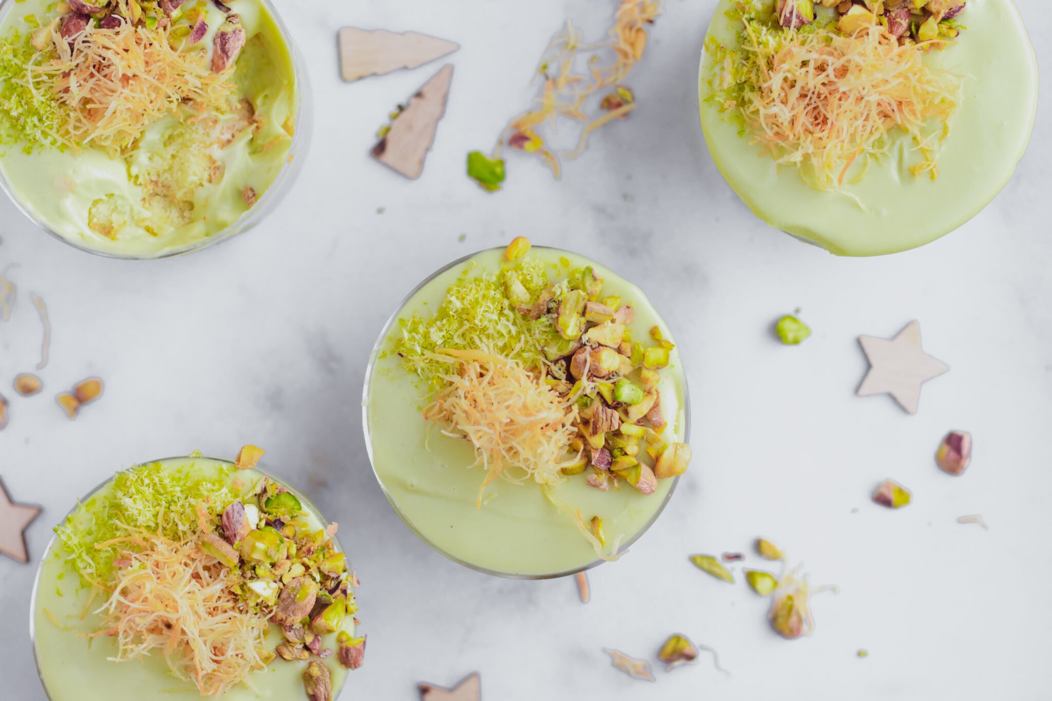 Dit Siciliaanse pistachetoetje is een soort pistache tiramisu. Een feestelijk kerstdessert uit een glaasje!