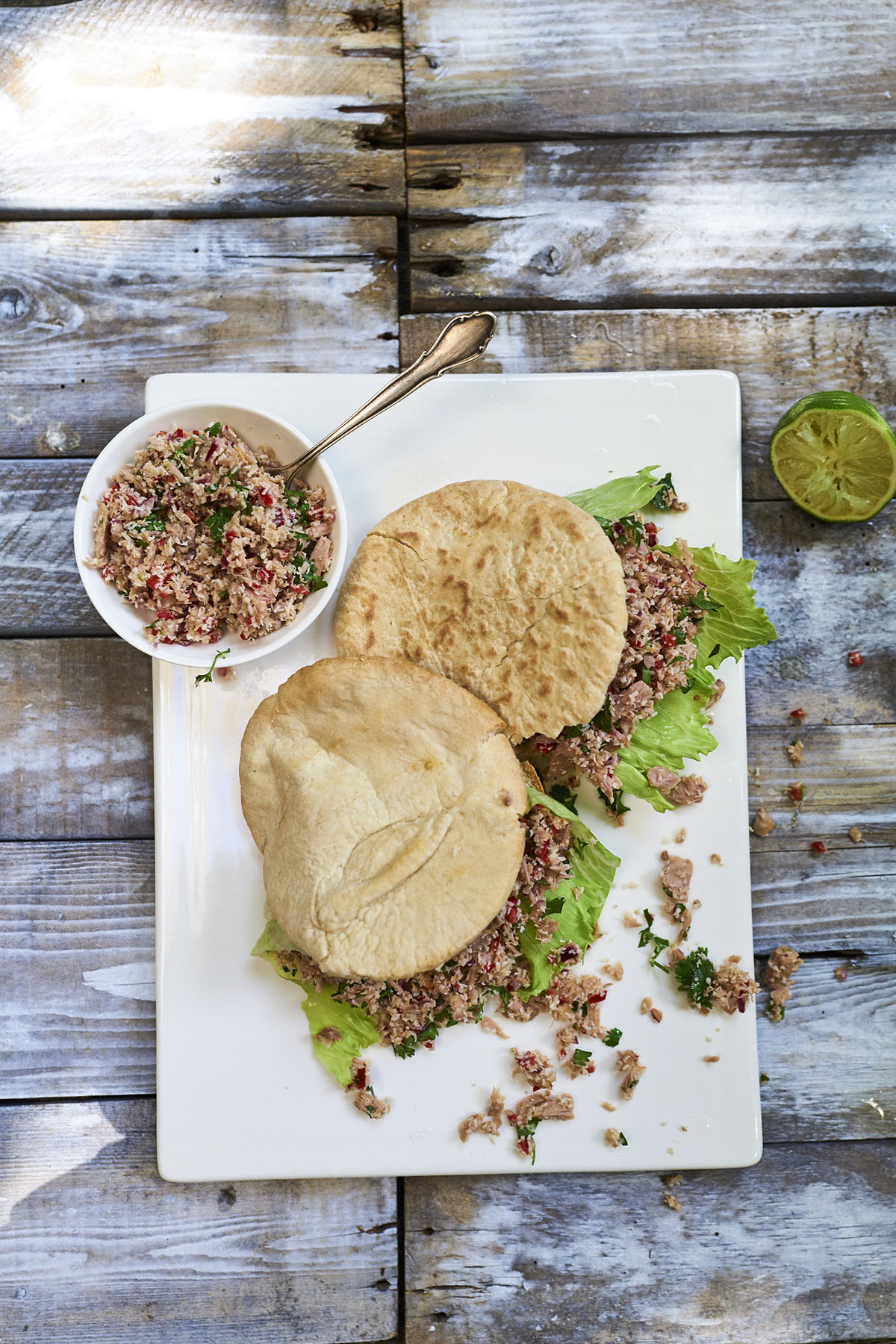 Pita met mas uni (pittige tonijnsalade met kokos & limoen)