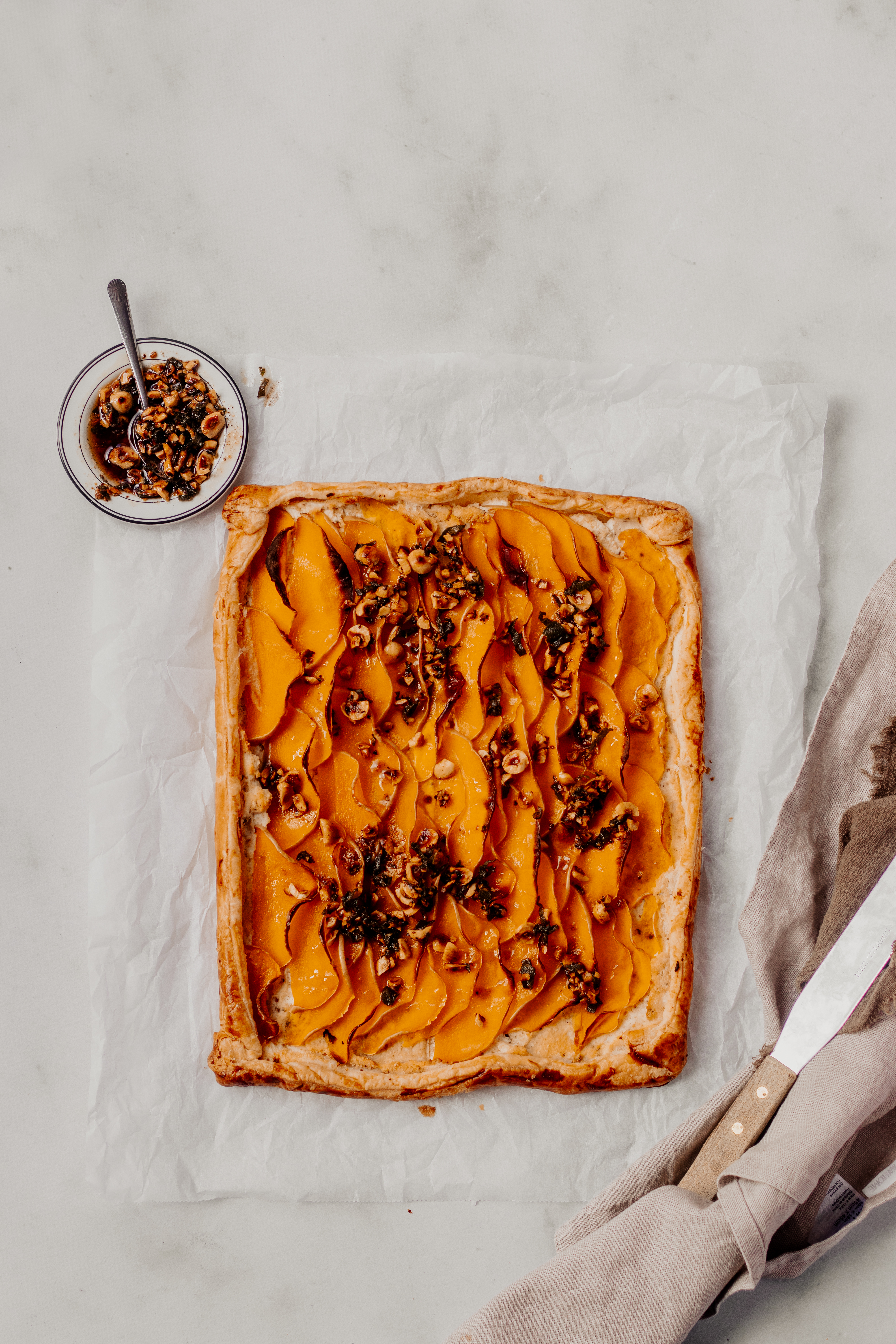Deze plaattaart met pompoen is daarom in korte tijd een favoriet geworden van de redactie. Het zijn al je klassieke smaakcombinaties van de pompoen in één recept. Ricotta, salie, gebruinde boter en hazelnoten, misschien wel dé noot van de herfst.