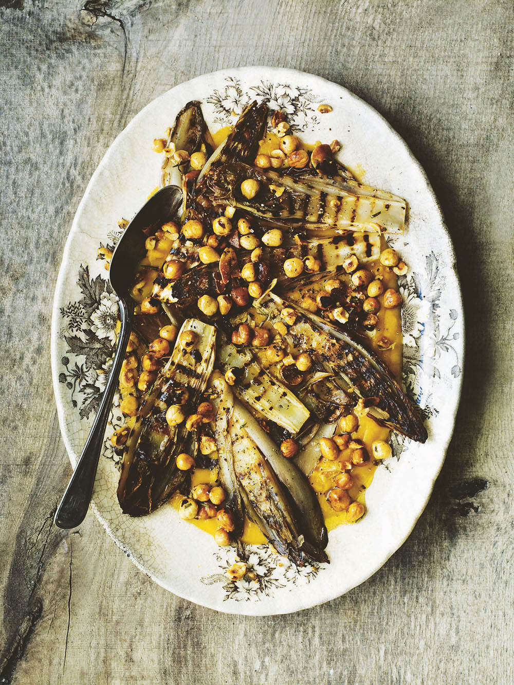 Deze herfstsalade maakt dit punt een stuk duidelijker, op een uitvoerbare, plezierige manier. Ik heb stevige stronken roodlof gebruikt, maar je kunt ook parten radicchio gebruiken, een van mijn andere favoriete bittere blaadjes.”