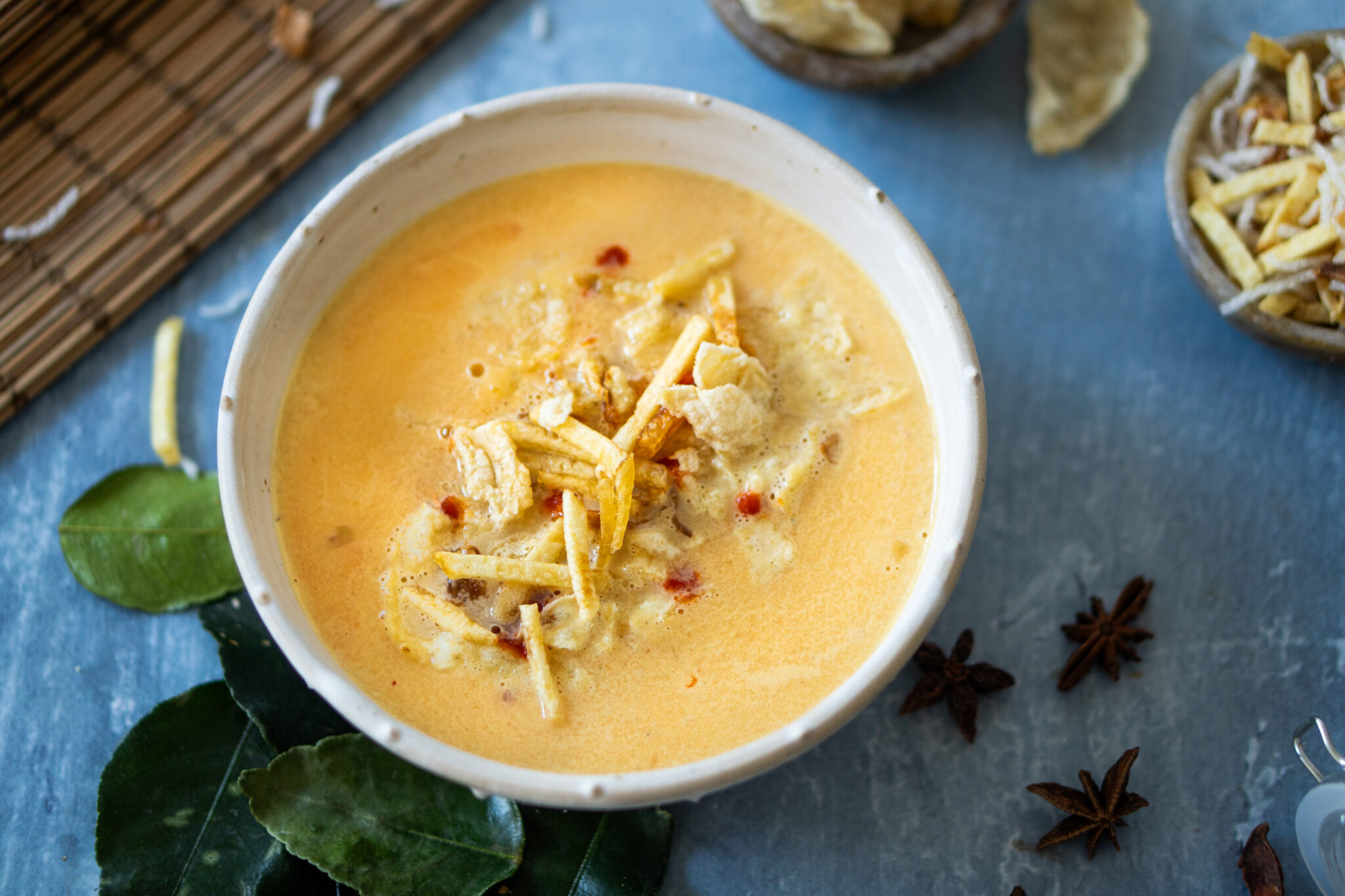 Het fijne aan pompoensoep is dat er tal van toffe varianten op te bedenken vallen, zoals deze heerlijke Indonesisch geïnspireerde variant.