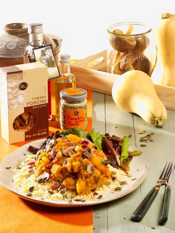 Heerlijk winters is deze pompoenstoof met couscous van Oil & Vinegar, ideaal naast bijvoorbeeld een heerlijke kalkoen of gebraad. Koop de dikgedrukte ingrediënten bij jouw dichtstbijzijnde Oil & Vinegar of online.